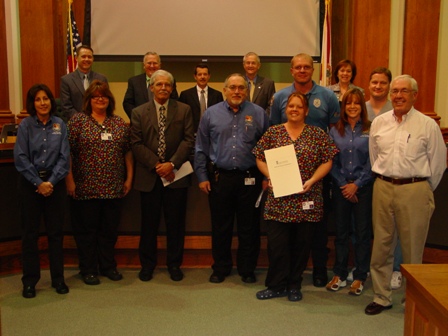 We hereby acknowledge the contributions and dedication of the operators and maintenance staff at the Green Meadows Water Treatment Facility under direction of the Lead Operator, Mr. Val Sikora. NOW, THEREFORE BE IT RESOLVED that the Board of County Commissioners of Lee County, Florida, does hereby take great pleasure in congratulating Lee County Utilities, and conveying our appreciation for their dedicated contribution to Lee County. Duly Executed this 27th day of May, 2008.